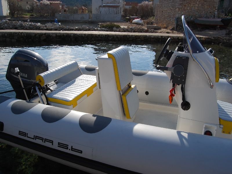 Koristeći materijal Hypalon čija je kvaliteta i izdržljivost već potvrđena u našim prijašnjim modelima, proizveli smo čamac izuzetnih maritimnih sposobnosti.Kvalitete koje treba posebno naglasiti kod BURE 5.6 su prostranost i funkcionalnost, postignute novim oblikovanjem i smještajem skiperskog sjedišta. Uz redizajniranu konzolu i završnu obradu s mogućnošću odabira detalja u žutoj ili narančastoj boji, te zanimljivo oblikovane protuklizne elemente, BURA 5.6 je čamac koji neće ostati nezapažen.